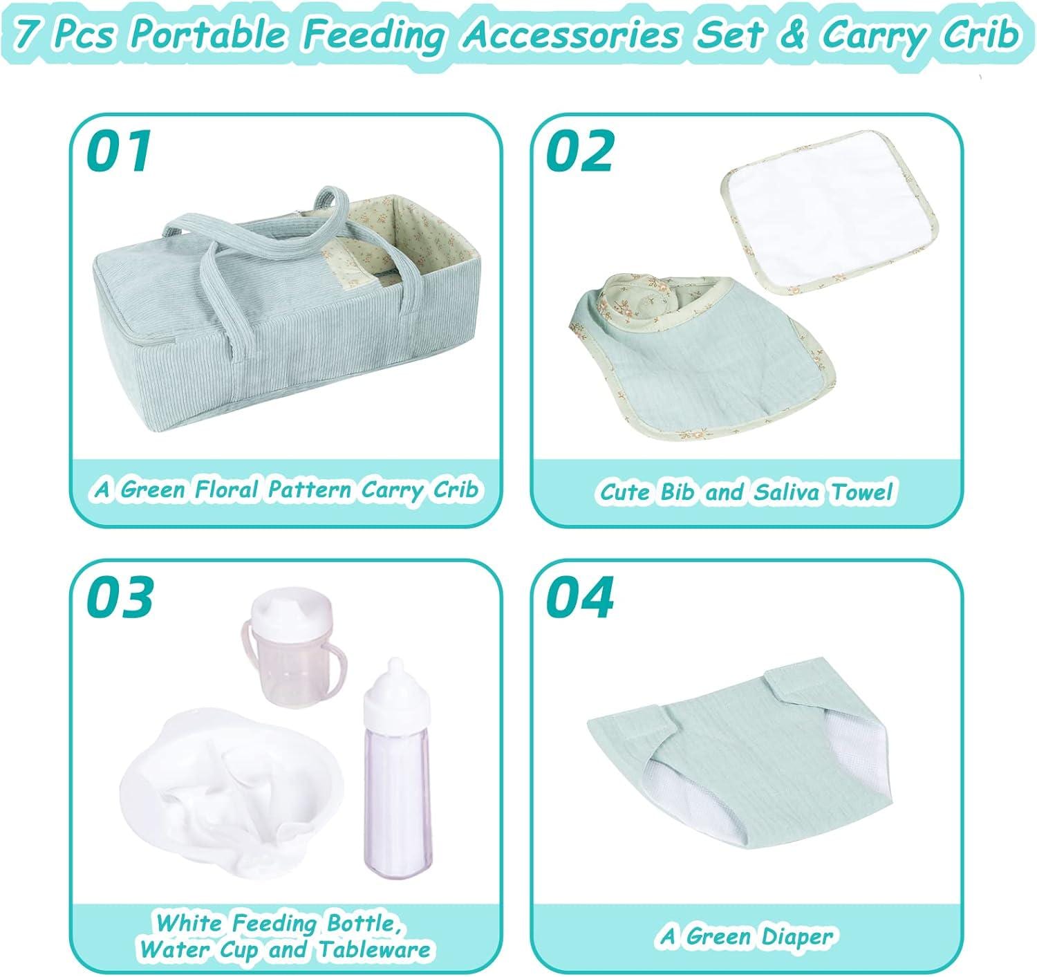 Doll Carrier Crib Set, Feeding Accessories, Fits 16-18 Inch Dolls