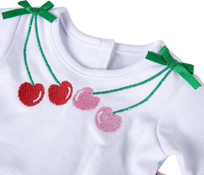 Doll Clothes Set, Cherry Shirt, Red Skirt, Hairpins, Shoes, for 18" Dolls